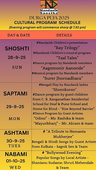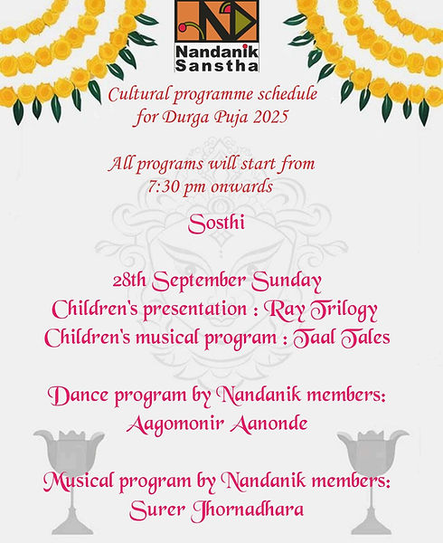 We are celebrating our 22nd Durga puja in and the schedule is below.